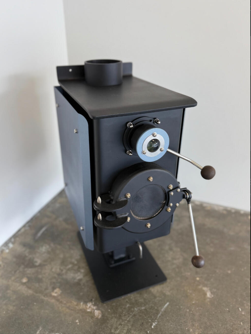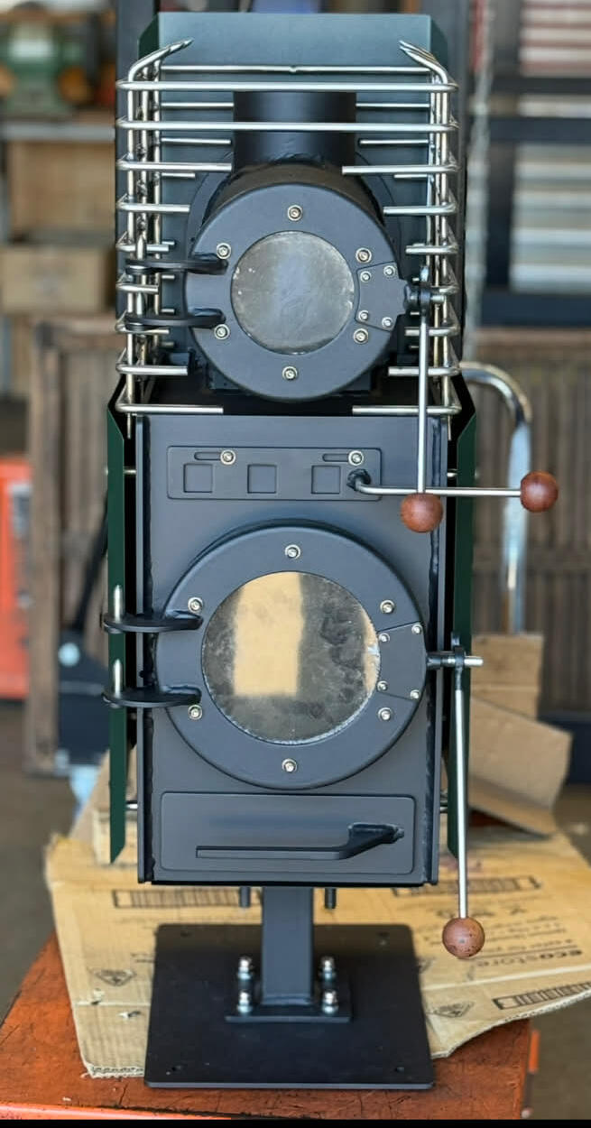 Compact wood burner for small spaces. Designed for tiny homes, huts, sleepouts and mobile setups.